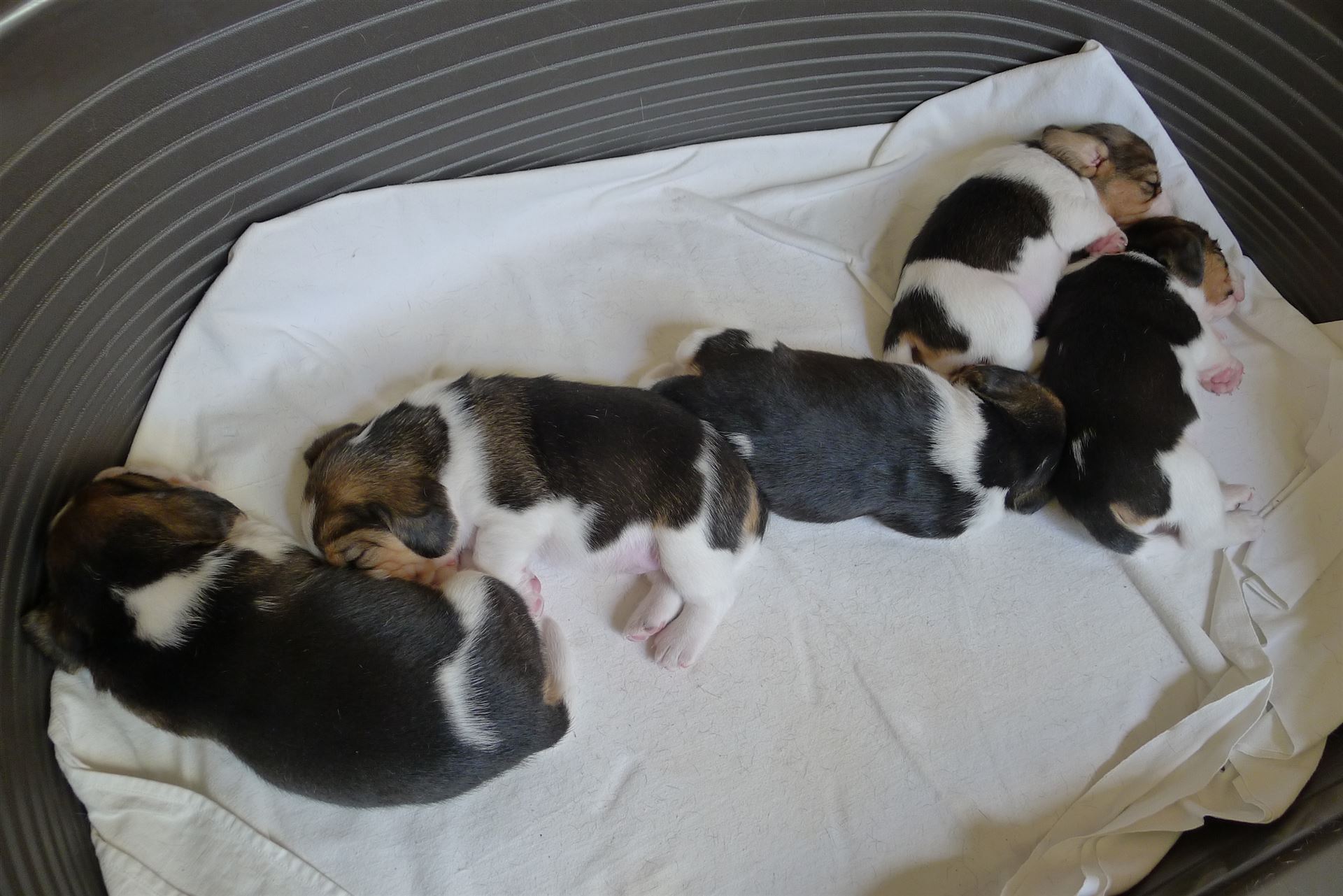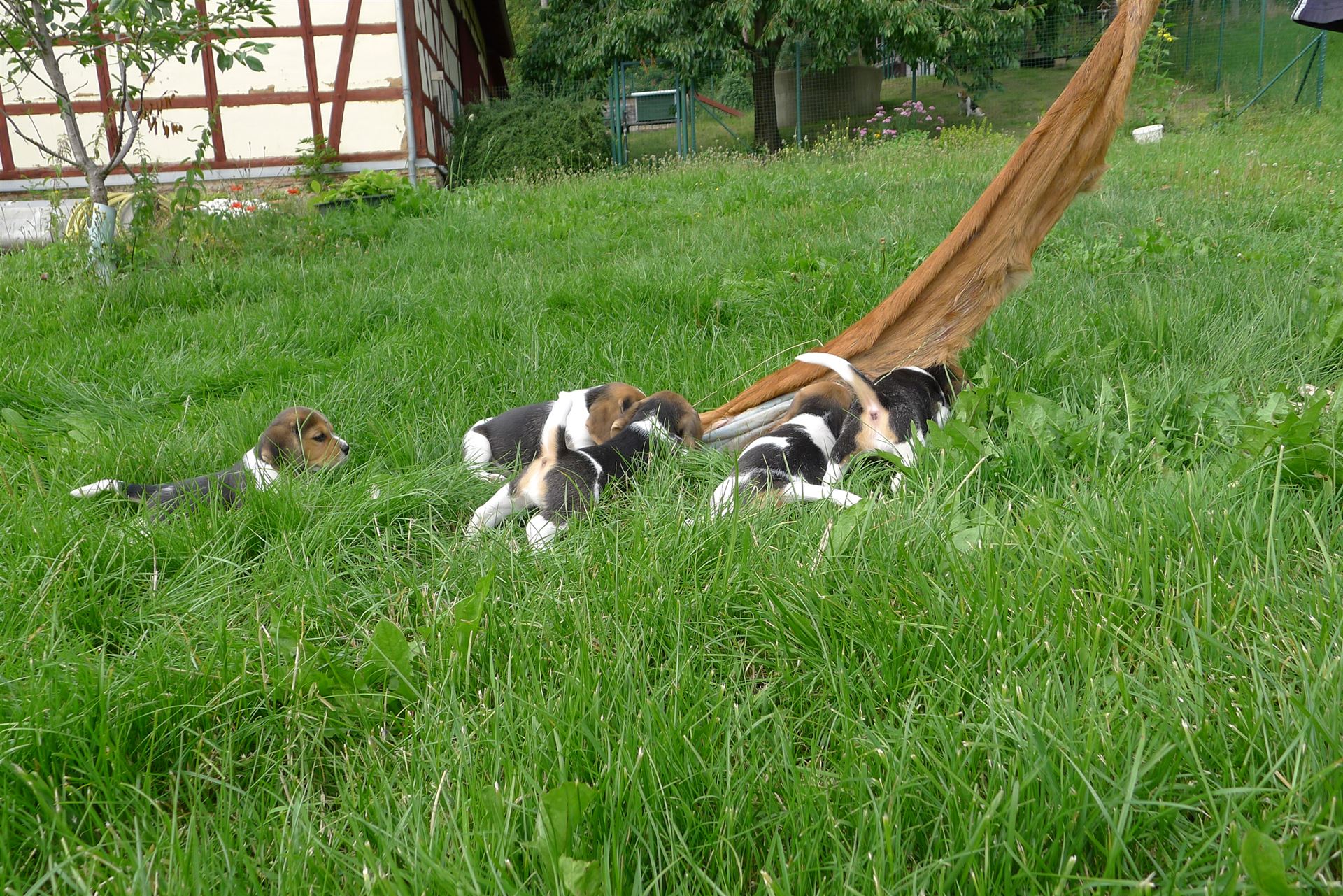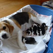 Am 14.06.2020 legte Hexe von der Sachsenmeute einen Wurf mit 5 Welpen – 2 Rüden und 3 Hündinnen.