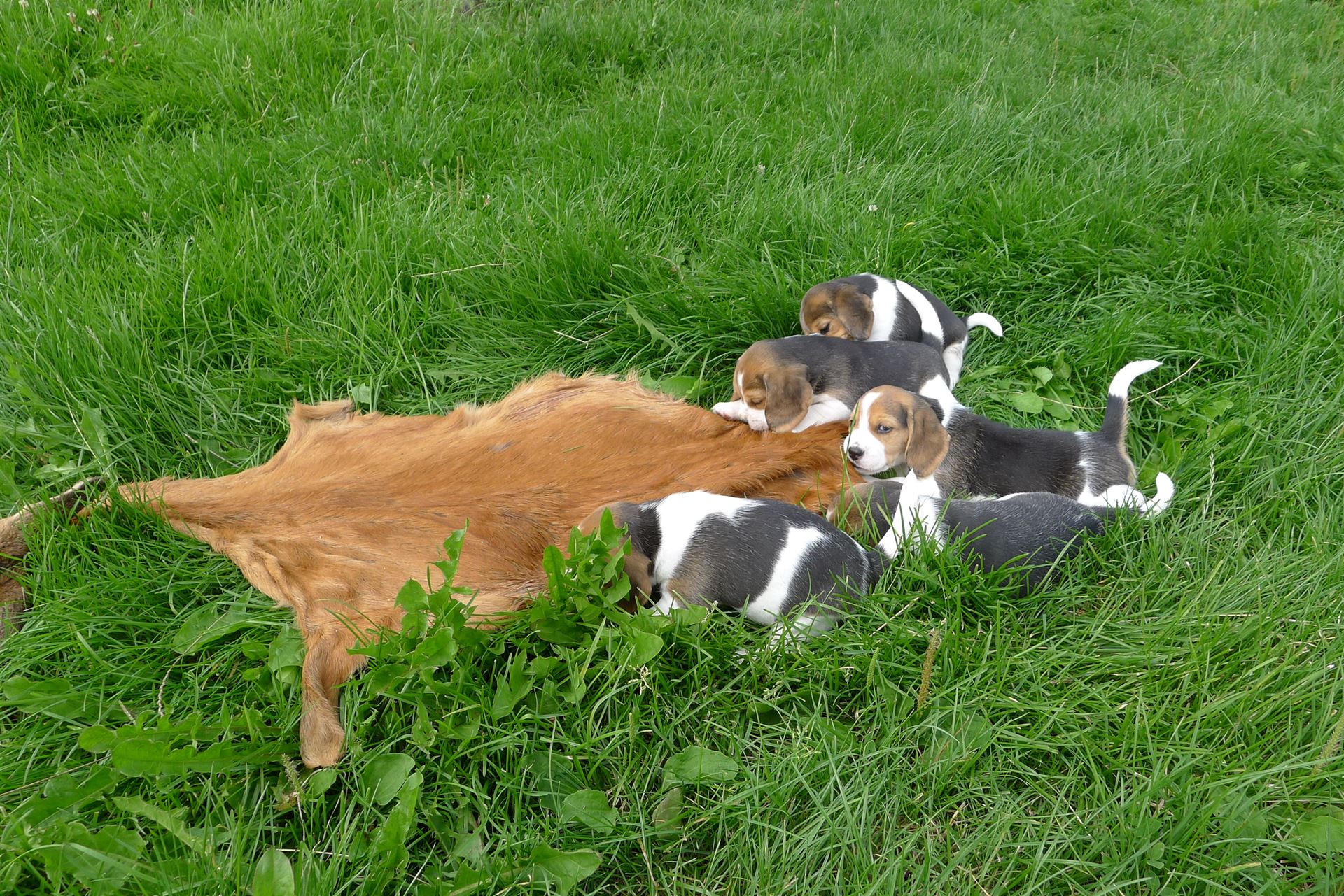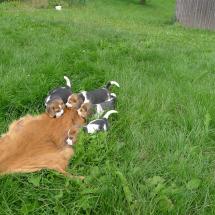 Ab der fünften Woche mache ich sie mit allen möglichen Wildgerüchen vertraut. Dieses Vorgehen ist von großer Wichtigkeit da alle Hunde später bei der Jagd eingesetzt werden.